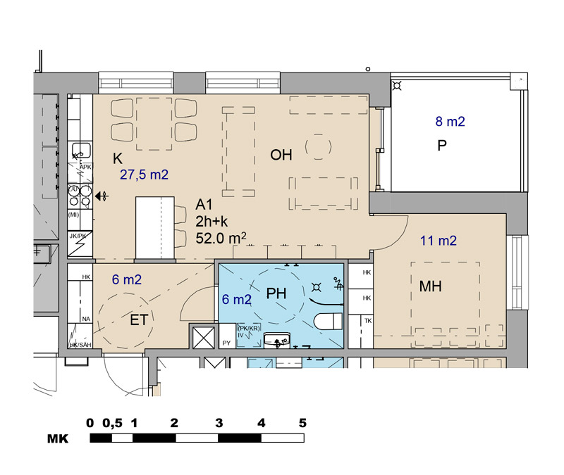 Asuntokohteen pienkerrostalojen runkomateriaaliksi valittiin Wienerbergerin Poroton S8 -kennoharkot. Keraamisisista tiiliharkoista muurattu ulkoseinärakenne täyttää sellaisenaan ilman erillistä lämmöneristekerrosta ulkoseinältä vaaditun 0,17 W/m2K lämmöneristysvaatimuksen. Poroton S8 -harkon kennosto on täytetty vulkaanisella kivirouheella, perliitillä, joka toimii kosteusteknisesti tiilen tavoin ja muodostaa yhdessä tiilikennoston kanssa yksiaineisen ja hengittävän seinärakenteen. Massiivinen tiilirunko on pitkäikäinen ja asukkaan näkökulmasta turvallinen. Se tasaa tehokkaasti lämpötilojen ja kosteuden vaihteluita, on sisäilmaesteetön, paloturvallinen ja ääniympäristöltään miellyttävä.